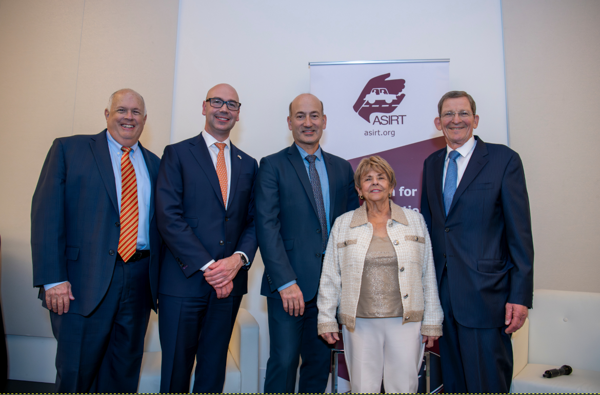 Left to right: Master of Ceremonies and Gala Co-Chair Andrew D. Koblenz; NHTSA Administrator Jonathan Morrison; Brian Latouf of the Hyundai Motor Group; ASIRT Founder and President, Rochelle Sobel; Honoree Ambassador Marc Grossman